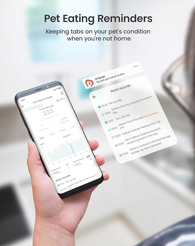 - Intelligent feeding via app: The Automatic Cat feeder features a mobile app that lets you view feeding times, frequency and quantities, and compare and evaluate feeding data. You can set up a precise, scientific feeding plan for cats, with programmed, healthy doses, automatic feeding in collaboration with the intelligent dispenser.(Add up to 10 plans per day)