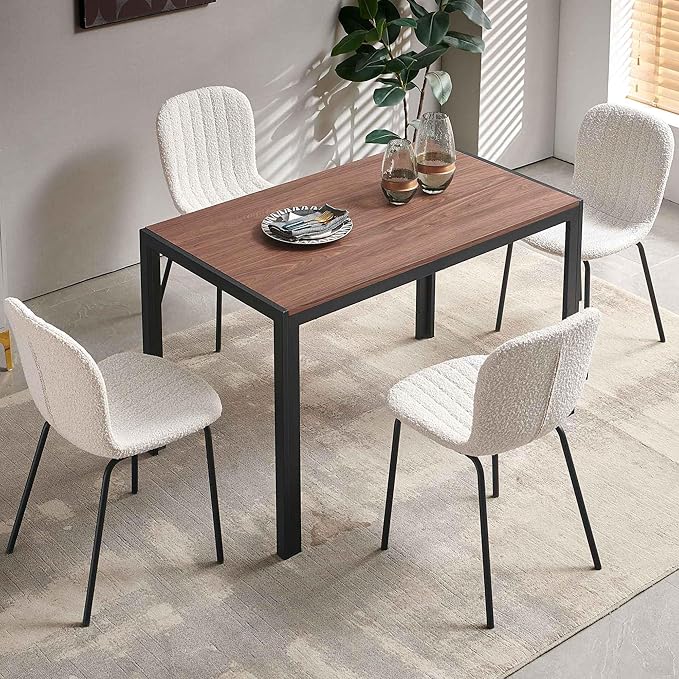 Modern Dining Table Set for 4, 47" Solid MDF Table Faux Wood Industrial Style Kitchen Table Set with 4 Beige Boucle Dining Chairs for Breakfast Nook, Dinette