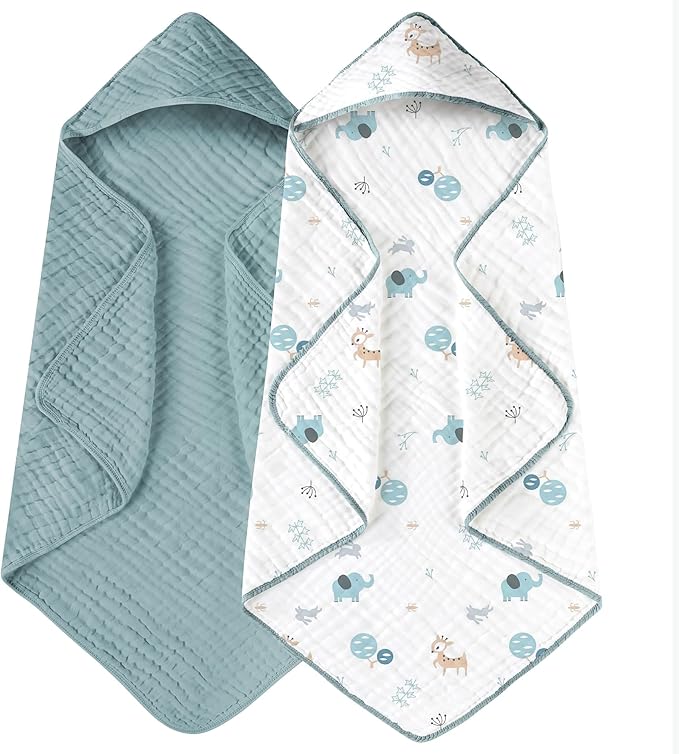 - [Excellent Durability] - The 6 layers thickness muslin design is long-lasting enough for everyday use. Sized in 32 x 32 inches, the hooded baby towels are suitable for newborns, infants, toddlers, and small kids up to 3 years old.