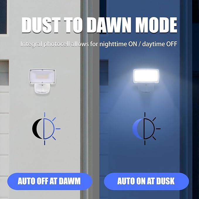 - Dusk to Dawn: Integral photocell allows for nighttime ON / daytime OFF, this means the light fixture will automatically turn ON when dark outside and turn OFF when the sun rises. This fixtures brightly illuminates a wide area with light sensor while saving on energy costs. This outside light for house is ideal for outdoor walkways, yards, patios, play areas and driveways creating an inviting exterior space as well as providing safety and security.