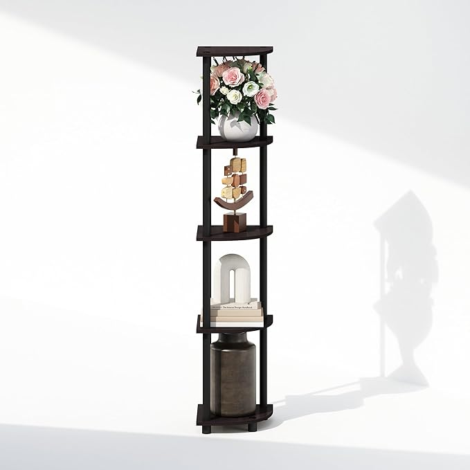 Furinno Turn-N-Tube Storage Shelves, 5-Tier Book Shelf, Corner Shelf, Toolless Open Shelves, for Organization and Storage, Living Room, Home Office, Hallway, Bedroom, Dark Walnut