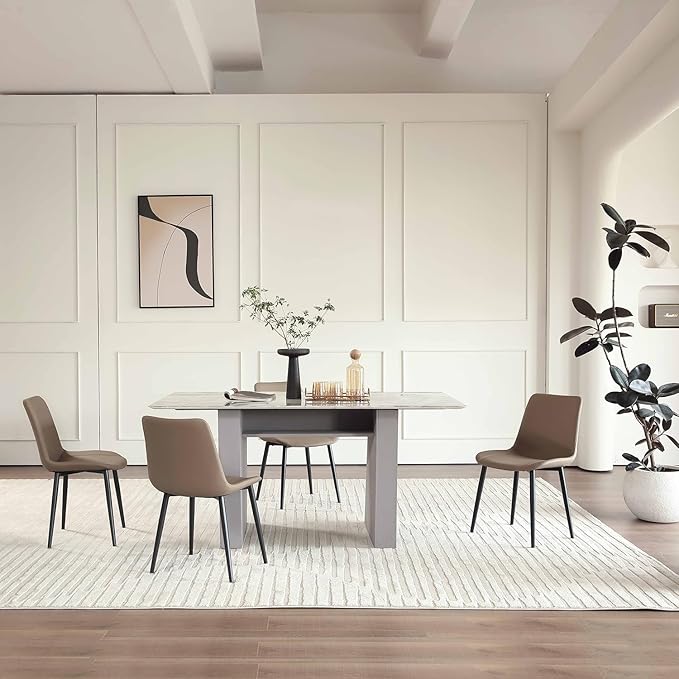 Leather Dining Chairs Set of 4, Mid Century Modern Faux Leather Kitchen & Dining Room Chairs, Comfortable Dinner Chair Kitchen Chairs for Restaurant Living Room, Cafe, Home (4, Coffee)