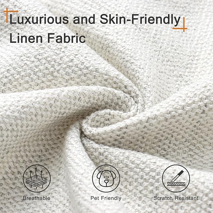 ABCASA 85" W Loveseat Couches for Living Room,Modern Linen Sofa with Removable Cover, Wide Armrest, Solid Wood Frame, Medium Firm Seat Cushion for Bedroom Office Apartment, Easy to Install, Ivory