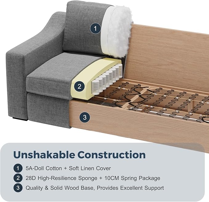 - Easy Installation Made Simple:Installing the easy-installation couch is easy and hassle-free. Clear instructions guide step by step. The components are designed for easy assembly with user-friendly fittings and connectors. In just a few minutes, it can be ready to use. No need for complex tools or professional help, making the installation process stress-free and allowing quick enjoyment of its comfort and style of the easy-installation couch.