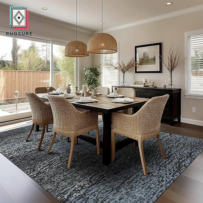 RUGSURE Washable Area Rug - 1/6 Thick - Stain & Water Resistant Non-Slip - Resistant Rug for Living Room, Bedroom, Nursery, Pet & Child Friendly, Vintage Charm Area Rugs (Darkgrey+Bule, 8' x 10')