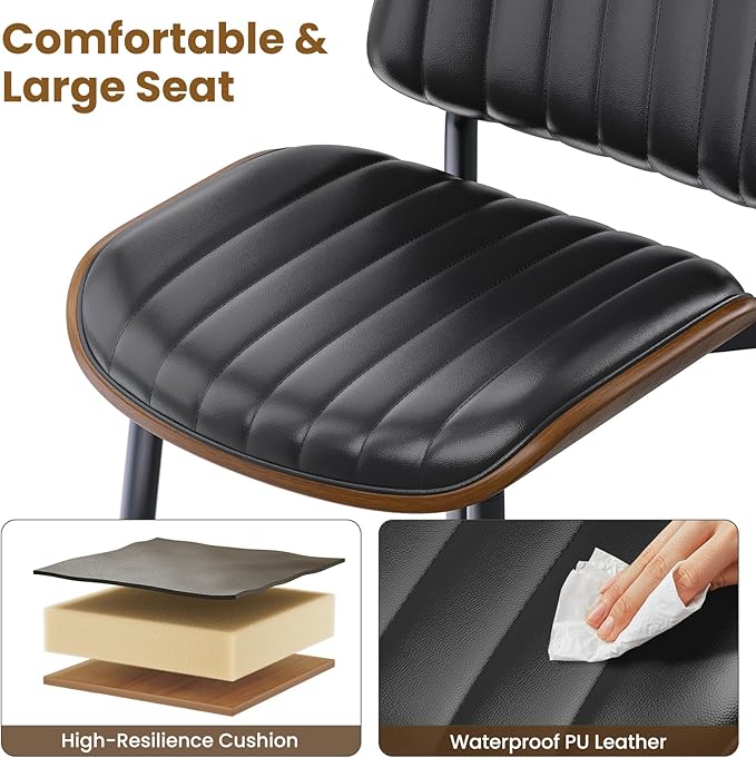 - 【High-quality Material】The back of the dining chairs set of 4 adopt enduring solid wood walnut. The surface of the cushion and backrest is covered with soft PU leather, and the interior is filled with high-density sponge, which is soft and smooth, ensuring the comfort of sitting on the black dining chairs for a long time. With these dining room chairs, the dining room will look modern, elegant and distinctive!