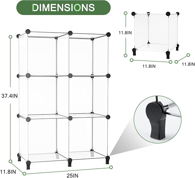 Neprock Closet Organizer, 6 Cube Closet Organizers and Storage, Portable Closet Storage Shelves for Yarn,Books,Clothes(Transparent White)