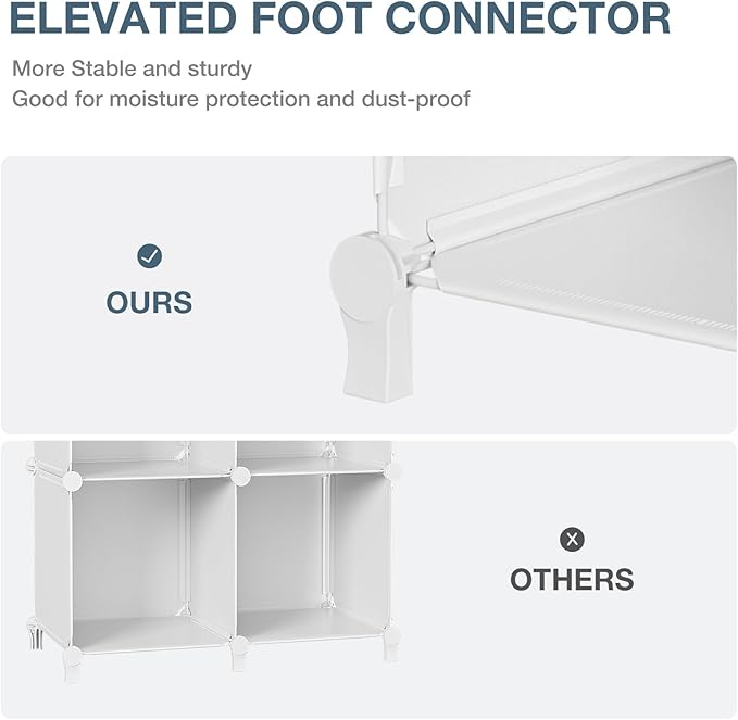 - π Durable Materials for Stability and Strength: Crafted from high-quality ABS plastic sheets and connectors, reinforced with thick metal frames, our cube storage organizer offers exceptional stability and weight-bearing capacity. Each cube can hold up to 22lbs, ensuring it can handle your storage needs with ease.