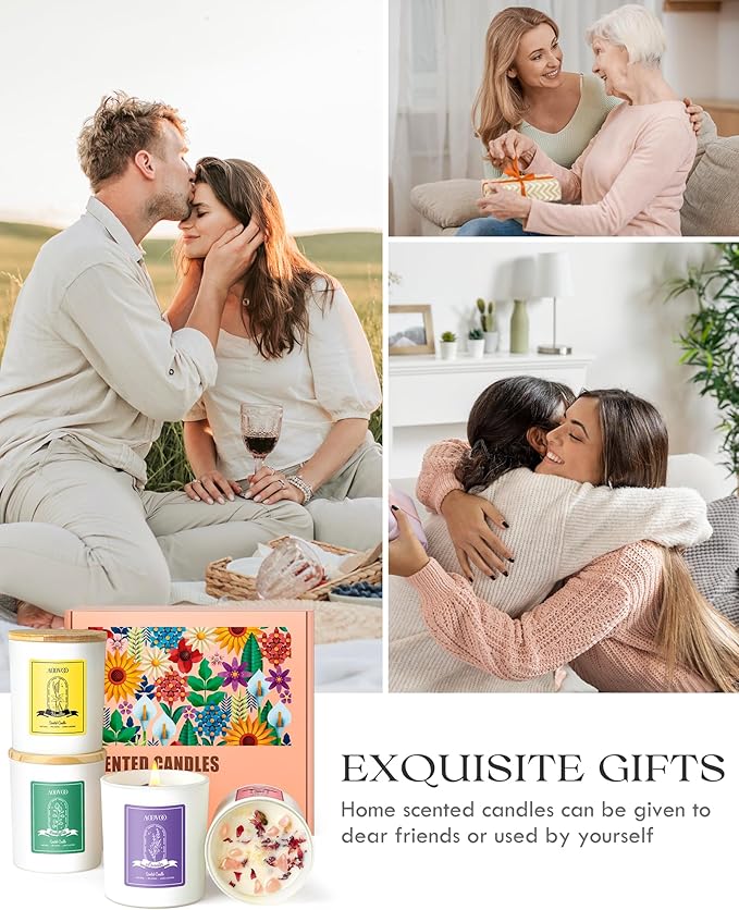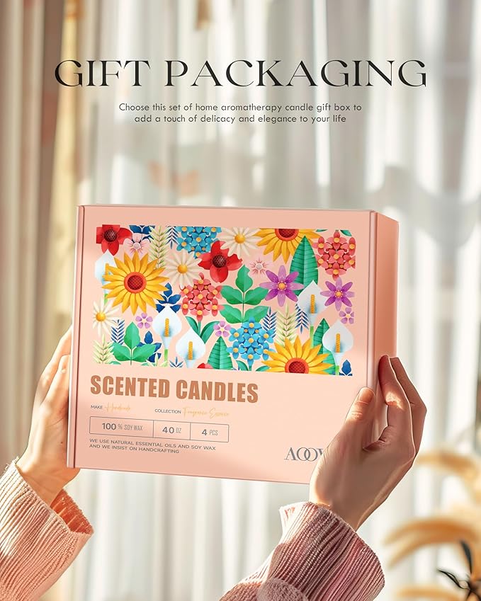 - SCENTED CANDLES GIFT for WOMEN and MEN: The fragrance is prepared by our professional perfumer, and the exquisite packaging box is designed according to the AOOVOO brand, floral fragrance as inspiration, We are confident in the professional craftsmanship of the aromatherapy candles. The scented candles are perfect for Christmas gift, Valentine's Day gift, mothers day gifts for mom, Thanksgiving Day gift, anniversary gift, and Birthdays gifts for women, mom mothers, girlfriends and wife