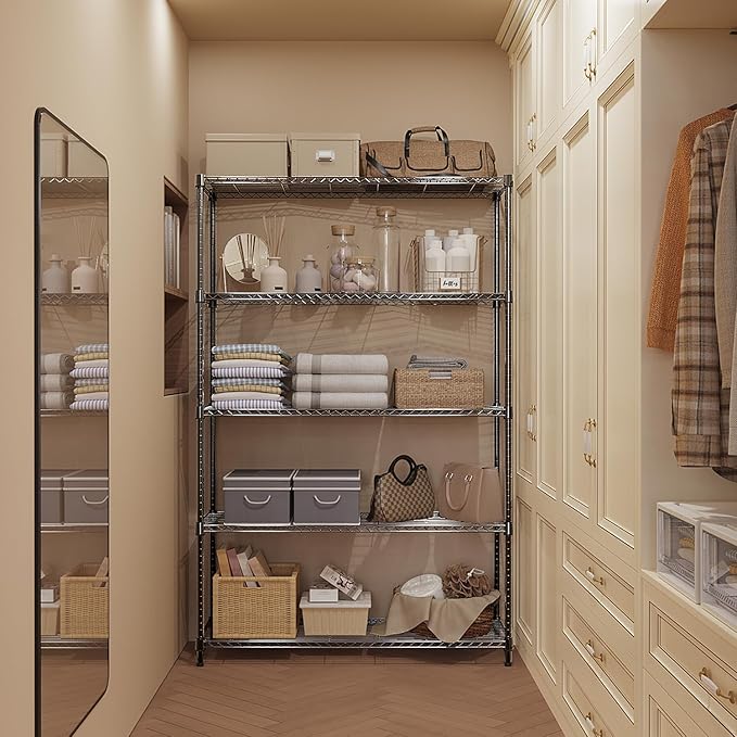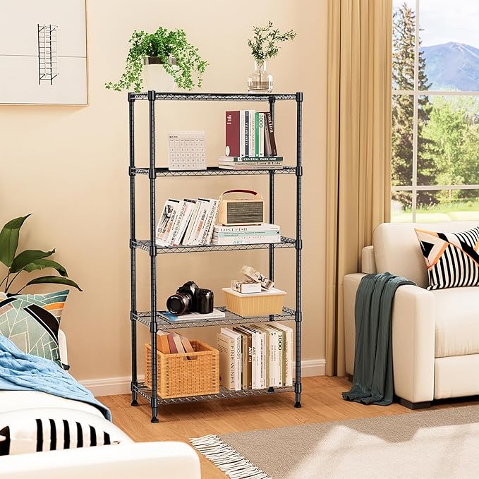 5 Tiers Shelf Metal Storage Shelves Standing 1750 LBs Household Shelf Organizer for Kitchen Pantry Closet Garage Basement Utility Room, Black15.7 D x 45.3" W x 70.4" H