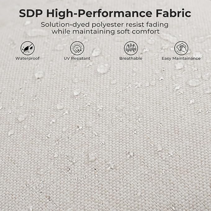 - PERFORMANCE: Hello OLEFIN, goodbye polyester! Our high-performance beige Olefin fabric for cushion is rated at 1200 UV hours - three times higher than typical polyester- to provide years of fade resistance and water resistance, more durability, easier to clean, and skin-friendly soft. 3.5-inch cushions provide an upgraded comfort and back support