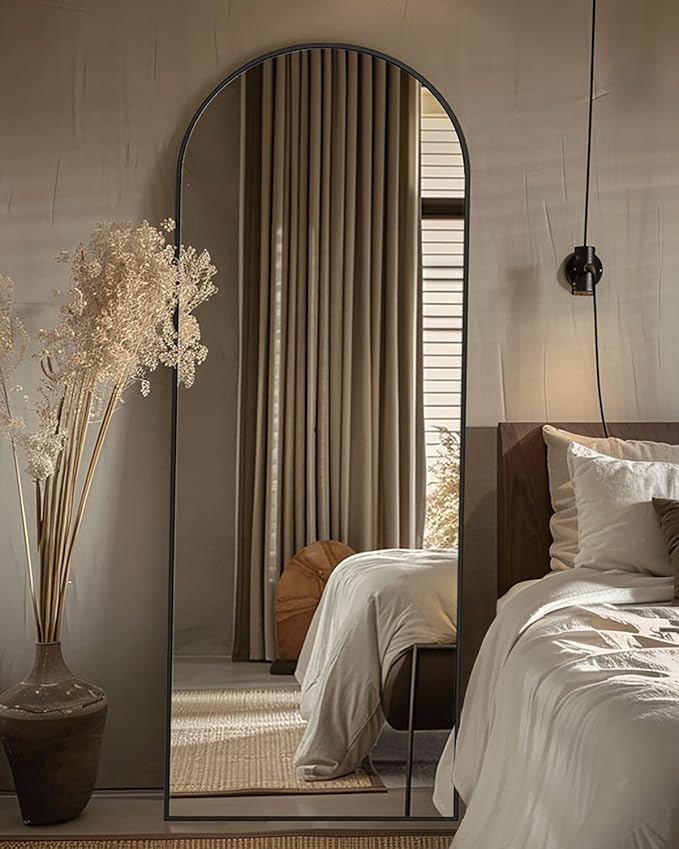 - 【Full Length Mirror】With its generous 58" height and 18" width, this mirror offers a full, clear reflection so you can confidently view your entire outfit. The arched design and minimalist frame blend effortlessly into any decor. Perfect for bedrooms, living rooms, entryways, home gyms, cloakrooms, clothing stores, and more—wherever you need a practical and stylish mirror.
