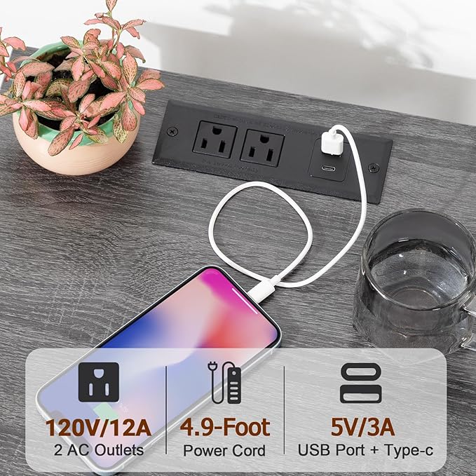- Night Stand with Charging Station: This 15.75" D x 13.78" W x 23.62" H end table with charging station designed with AC outlets. The charging station with 4.9ft long power cord is ideal for charging your phone, laptop and other devices at once