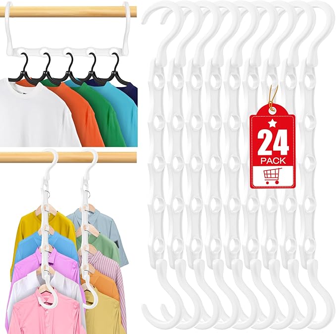24 Pack Hangers Space Saving Magic Plastic Hanger Organizer Shirt Space Saving Hangers, Multi Clothes Hangers Space Saver for Closet Organizers Storage College Dorm Room Essentials, White
