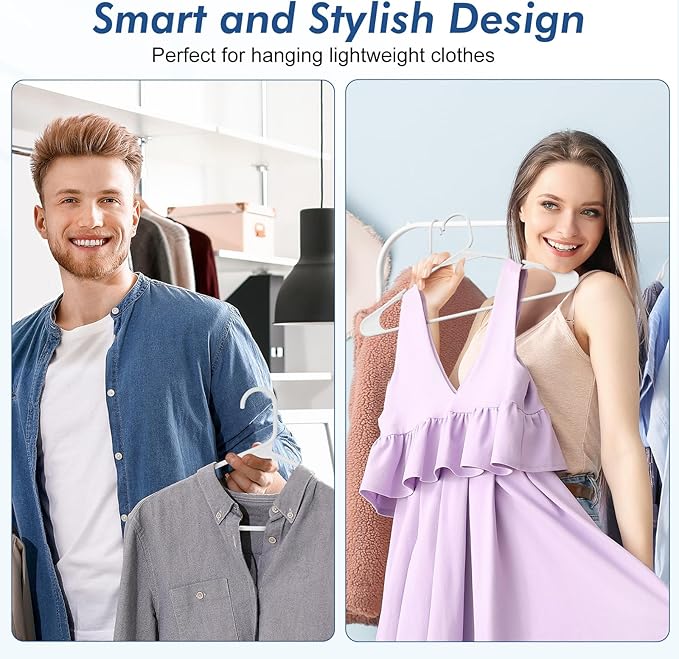 - Space Saving Hangers - These bulk hangers are sturdy and durable enough for everyday use, the slim design save more than 50% of the closet space. White clothes hangers make your closet more manageable - not only does it look neater, but it also means you'll spend less time fighting with cluttered hangers