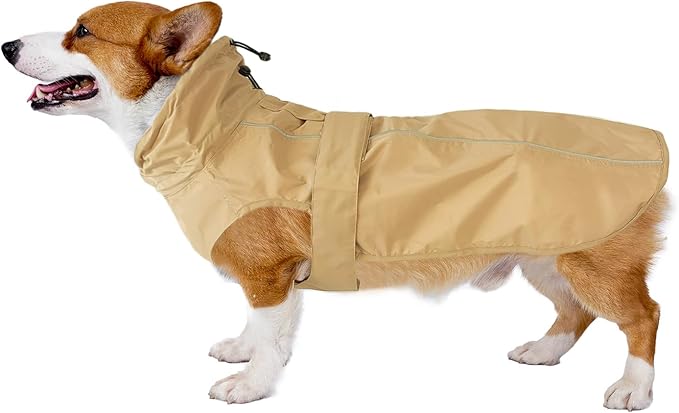 Waterproof Dog Raincoat with Reflective Strip, Adjustable Breathable Rain Coat Jacket with Leash Hole for Dogs (Khaki, X-Small)