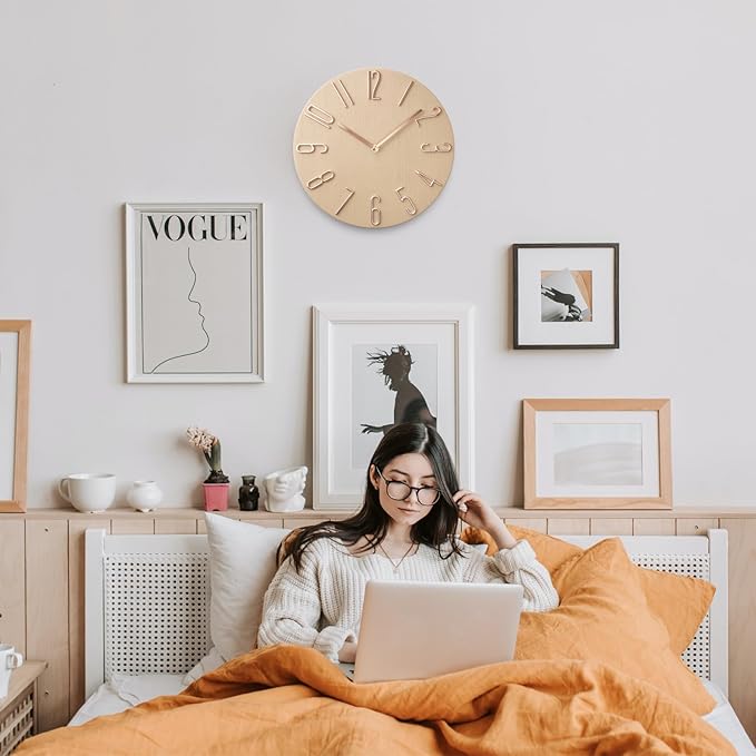 Wall Clock, Silent Clock, Wall Clocks Battery Operated, 12 inch Modern Wall Clock, Suitable for Offices, Living Rooms, Kitchens, Homes, Schools (Beige Without Second Hand)