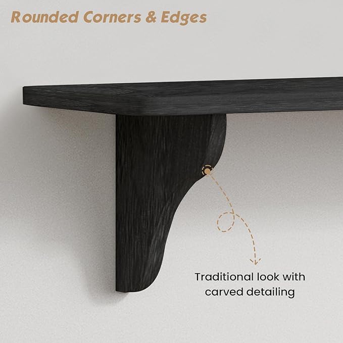 - 【Your Storage, Your Way】The classic "arched" pattern wood bracket design presents antique stylish. Install these 24 inch Long 8 inch deep floating wall shelves with the arched bracket provide best choices for your layout ideas, in a ladder shape, or in a line, or a symmetric way, or separate them in different rooms - the opportunities are endless.