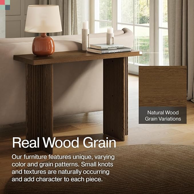 - Rich Craftsmanship Detail: Featuring a rich oak wood grain veneer top, this fluted entryway table complements both modern and traditional settings. Its solid wood construction offers enduring appeal, making it a timeless piece for any entryway console