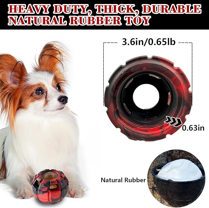 - 【Interactive IQ Dog Toy】Use silicone stopper to plug the top holes, leaving the remaining side holes to leak food, dogs must roll or push the ball to get the food which inside the ball, your pet's brain and intelligence will be improved greatly through healthy exercise.