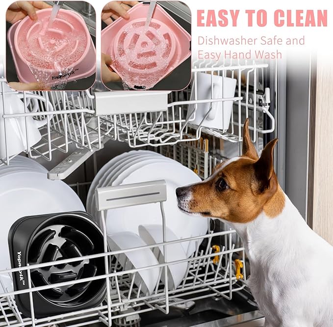 - PREMIUM DESIGN: The slow feeder dog bowl is meticulously designed to promote healthy eating habits in pets, particularly dogs prone to rapid eating. Its intricate maze-like pattern inside the bowl creates multiple obstacles for the food, compelling the pet to eat at a slower, more deliberate pace. The bowl can slow down your dog's eating time by 10X. This design not only helps in reducing the risk of choking and bloating but also aids in digestion by encouraging smaller bites.