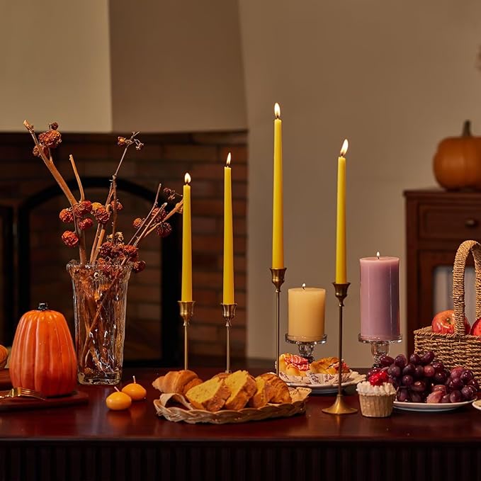 - 【Discover the Difference with Pickood】Imagine transforming any setting into a vibrant, elegant space with Pickood's Mustard Yellow Taper Candles. Perfect for various occasions, these candles promise to elevate the ordinary to the extraordinary. Available in 10-inch and 12-inch sizes, they cater to diverse preferences.