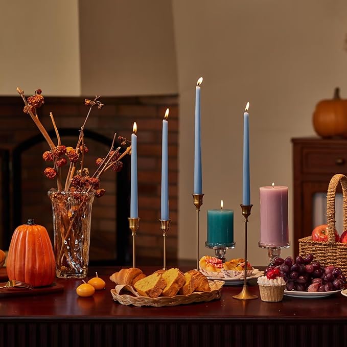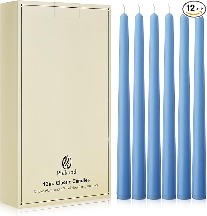 - 【Premium Blended Wax】Pickood's Light Blue Taper Candles feature a premium wax blend. Infused with soy wax and a minimal amount of paraffin wax, they provide a smooth, steady burn that is gentle on the environment and pleasing to your senses.