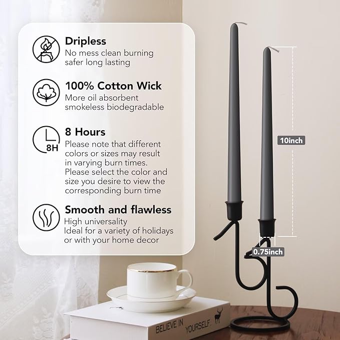 - 【Discover the Difference with Pickood】Imagine transforming any setting into a sophisticated, elegant space with Pickood's Smoked Pearl Taper Candles. Perfect for various occasions, these candles promise to elevate the ordinary to the extraordinary. Available in 10-inch and 12-inch sizes, they cater to diverse preferences.