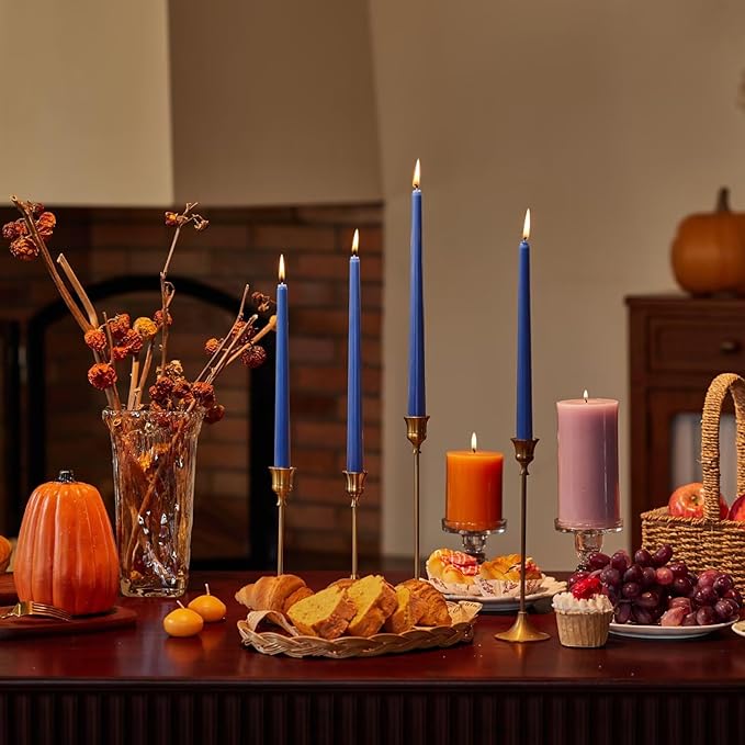 - 【Premium Blended Wax】Pickood's Dark Blue Taper Candles feature a premium wax blend. Infused with soy wax and a minimal amount of paraffin wax, they provide a smooth, steady burn that is gentle on the environment and pleasing to your senses.