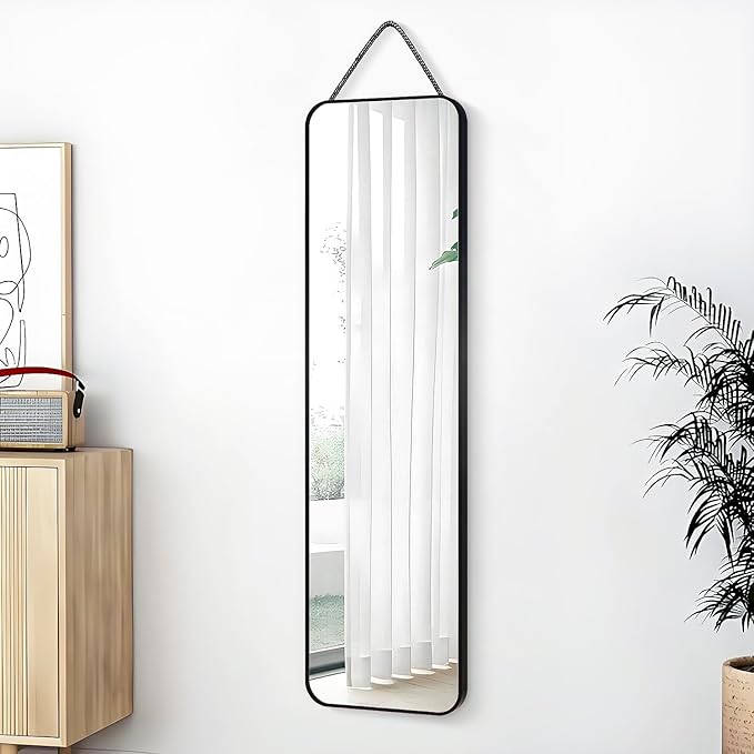 47x14 Mirror Full Body Length Door Hanging/Rope Hang/Wall Mounted Metal Frame Rectangle Mirrors for Bedroom Bathroom Dressing Living Room 47 inch Black