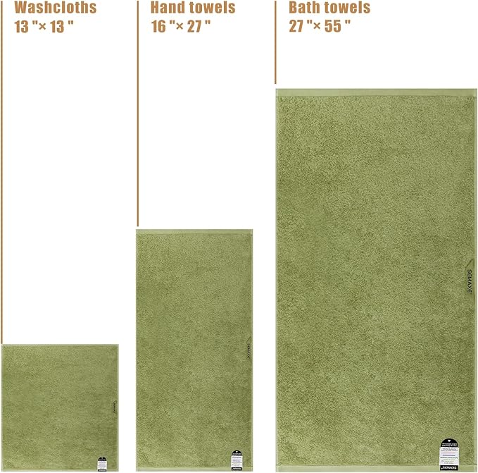 - Bath Towel (55"x27") - Perfect for wrapping around your body after a shower. Hand Towel (27"x16") - Ideal for quickly drying your hair or hands. Washcloth (13"x13") - Soft and gentle for cleansing your face