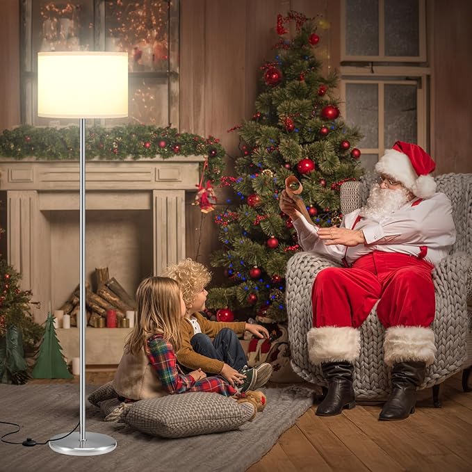 Ambimall 60'' Modern Floor Lamp with Shade, Tall Lamps for Living Room, Bedroom, Office, Dining Room, White Shade with Silver Pole(Without Bulb)