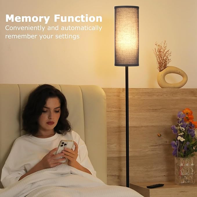 Ambimall 64'' Floor Lamps for Living Room with Remote Control and Stepless Dimmable Colors Temperature & Brightness, 9W Bulb Included(Black Lampshade & Black Pole)