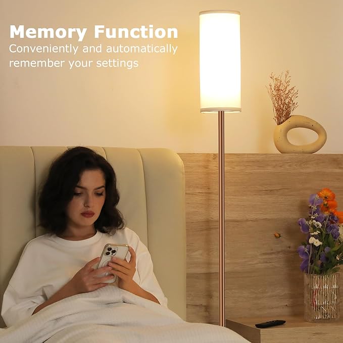 Ambimall 64'' Floor Lamps for Living Room with Remote Control and Stepless Dimmable Colors Temperature & Brightness, 9W Bulb Included(White Lampshade & Brown Pole)