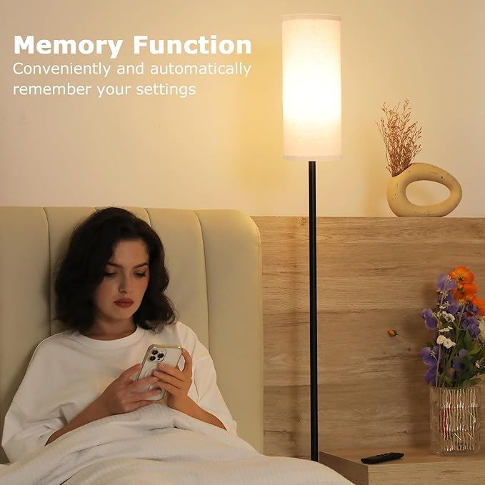 Ambimall 64'' Floor Lamps for Living Room with Remote Control and Stepless Dimmable Colors Temperature & Brightness, 9W Bulb Included(Beige Lampshade & Black Pole)