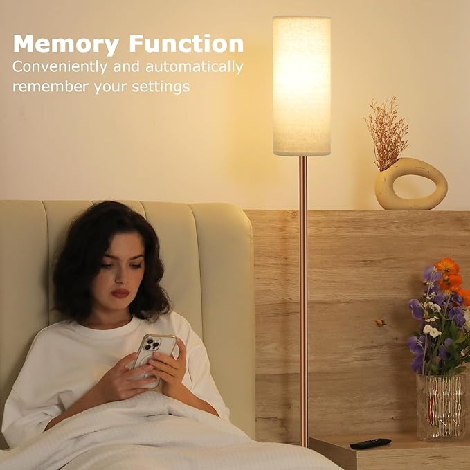Ambimall 64'' Floor Lamps for Living Room with Remote Control and Stepless Dimmable Colors Temperature & Brightness, 9W Bulb Included(Beige Lampshade & Brown Pole)
