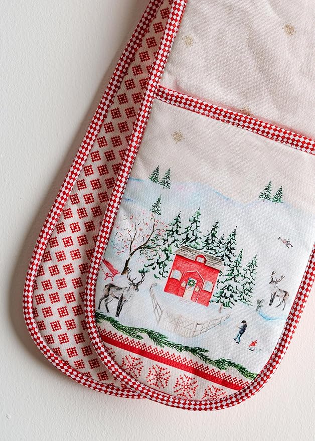 Maison d' Hermine Double Oven Mitt (7" x 35") 100% Cotton Heat Resistant BBQ Cooking Gloves with Loop for Thanksgiving Christmas Decorations Baking Cooking Barbeque Handling Hot Pan (Rural Christmas)