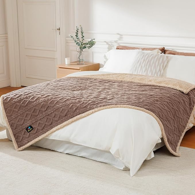 Waterproof Pet Blanket, Liquid Pee Proof Dog Blankets for Sofa Bed Couch, Reversible Sherpa Fleece Furniture Protector Cover for Small Medium Large Dogs Cats,Khaki X-Large(85" x 57")