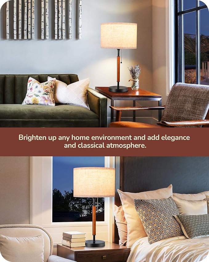 - [Convenient Pull Chain Switch] Designed with a sleek pull chain switch, this side table lamp offers effortless operation while neatly concealing the cord, maintaining a tidy and attractive home environment; the metal triangle exit ensures smooth, wear-resistant switching, providing a silky touch every time