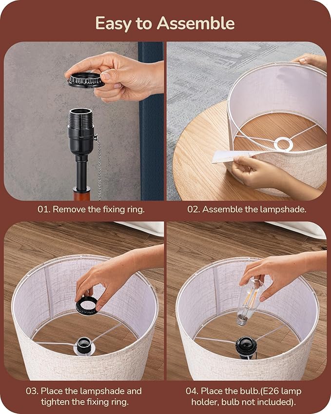 - [Easy Assembly] Assemble your perfect table lamp effortlessly with the simple-to-install lampshade, featuring an E26 socket (bulb not included) and a generous 65-inch power cord, this lamp offers flexible placement options, allowing you to create the ideal lighting setup in any space