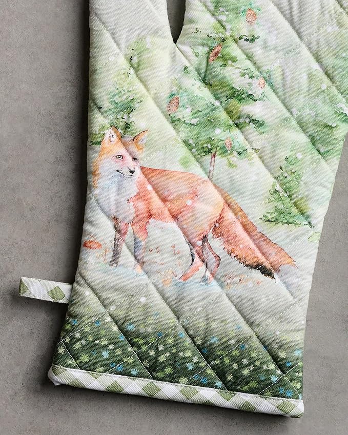 Maison d' Hermine 100% Cotton Oven Mitt & Pot Holder Set (7.5"x13" & 8"x8") Heat Resistant BBQ Cooking Gloves with Loop for Thanksgiving Christmas Decorations Handling Hot Pans (Winter Mornings)