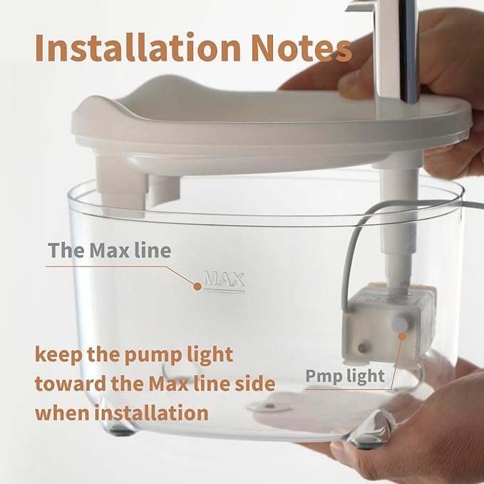 - Ultra Quiet Pump: the Upgraded water pump of this cat water dispenser can operate ultra- quietly, so we can enjoy a quiet sleep as well as our beloved pets. It also can remind us the water lack with the Built-in LED light.