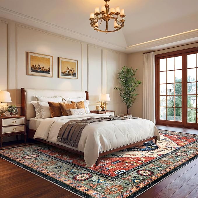 - TRADITIONAL AND VINTAGE AESTHETICS RUG: Our living room area rug features a traditional design that seamlessly complements a range of decor styles, from vintage to modern, suitable for all indoor spaces - living rooms, bedrooms, dining rooms, and offices