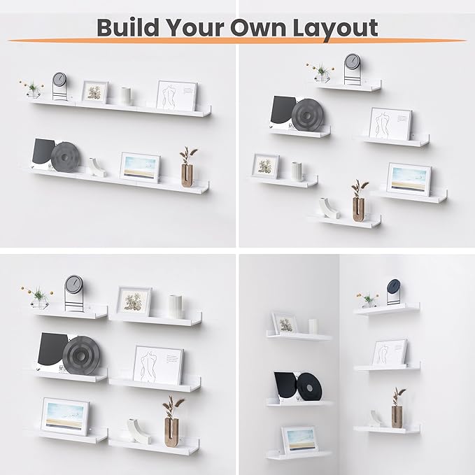 - Value for Money - The 6pack wall shelves not only can be assembled into a long shelf measuring up to 31 inches for wall display, but also can be placed individually in every corner, organizing your small items at any time.