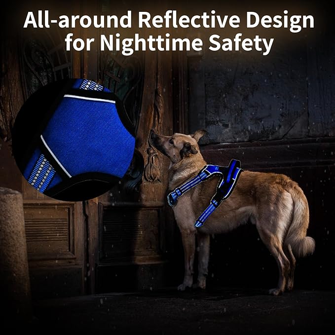 Dog Harness, No-Pull Pet Breathable Harness, Adjustable Soft Padded Dog Vest with 2 Leash Clips, Reflective No-Choke Pet, Easy Control Handle for Large Dogs, Blue, S
