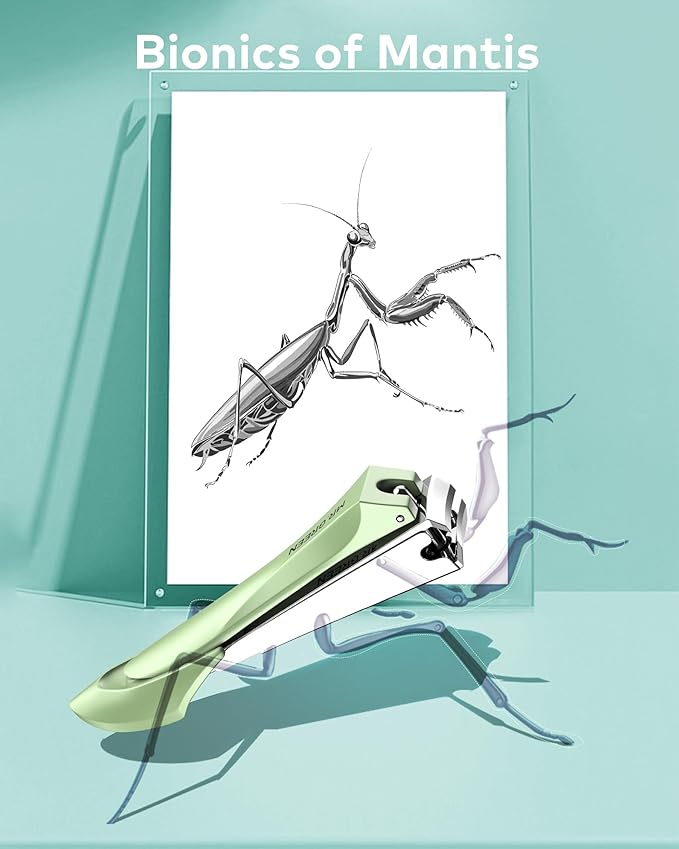 - Bionic and Ergonomic Design: This nail cutter features a bionic design inspired by the shape of a mantis, with smooth and aesthetically pleasing lines. The handle is ergonomically designed with a widened tail for effortless use and a comfortable grip. It combines practicality with a focus on aesthetics.