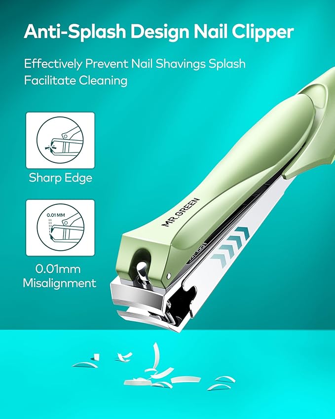 MR.GREEN Nail Clippers with Nail File,Anti Splash Nail Clipper Set for Thick Nails,Medical Grade Stainless Steel Professional Nail Cutter,Sharp and Durable fingernail Clipper for Men and Women(Green)