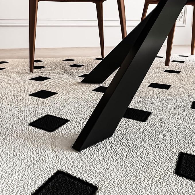 - Stylish and Unique Design: The dining table features a sleek and contemporary design. The combination of tempered glass and unique legs creates a striking visual contrast, adding a touch of sophistication to your home decor. Its unique shape and design make it a focal point in dining room, making a statement of style and taste.The anti-slip mats ensure that the table stays put and doesn't scratch your floor.