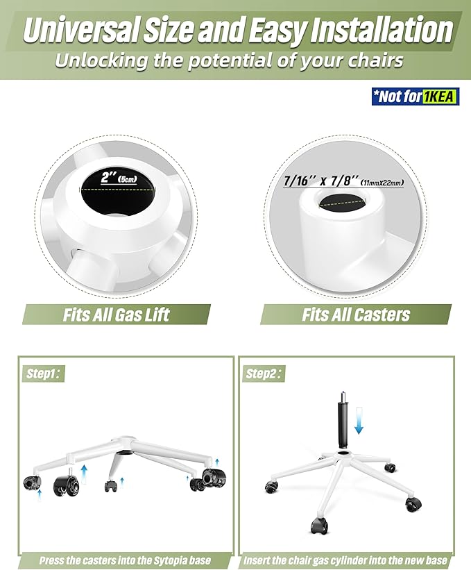 - đăUniversal SizeăThis 24'' office chair replacement base fits most office chairs on the market, including Herman Miller models (office, study, desk, and vanity chairs). Dimensions: base height â 4.72'' (12 cm); caster sockets â 7/16" x 7/8" (11 mm x 22 mm); gas cylinder â 2'' (5 cm). Note: Base only. Casters and gas lift not included. Not compatible with IKEA chairs.