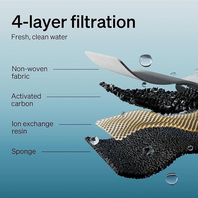 - All For Your Petโs Health - Every drop of water is filtered through multi-layer filtration to remove all impurities and provide oxygen-enriched and better-tasting water.